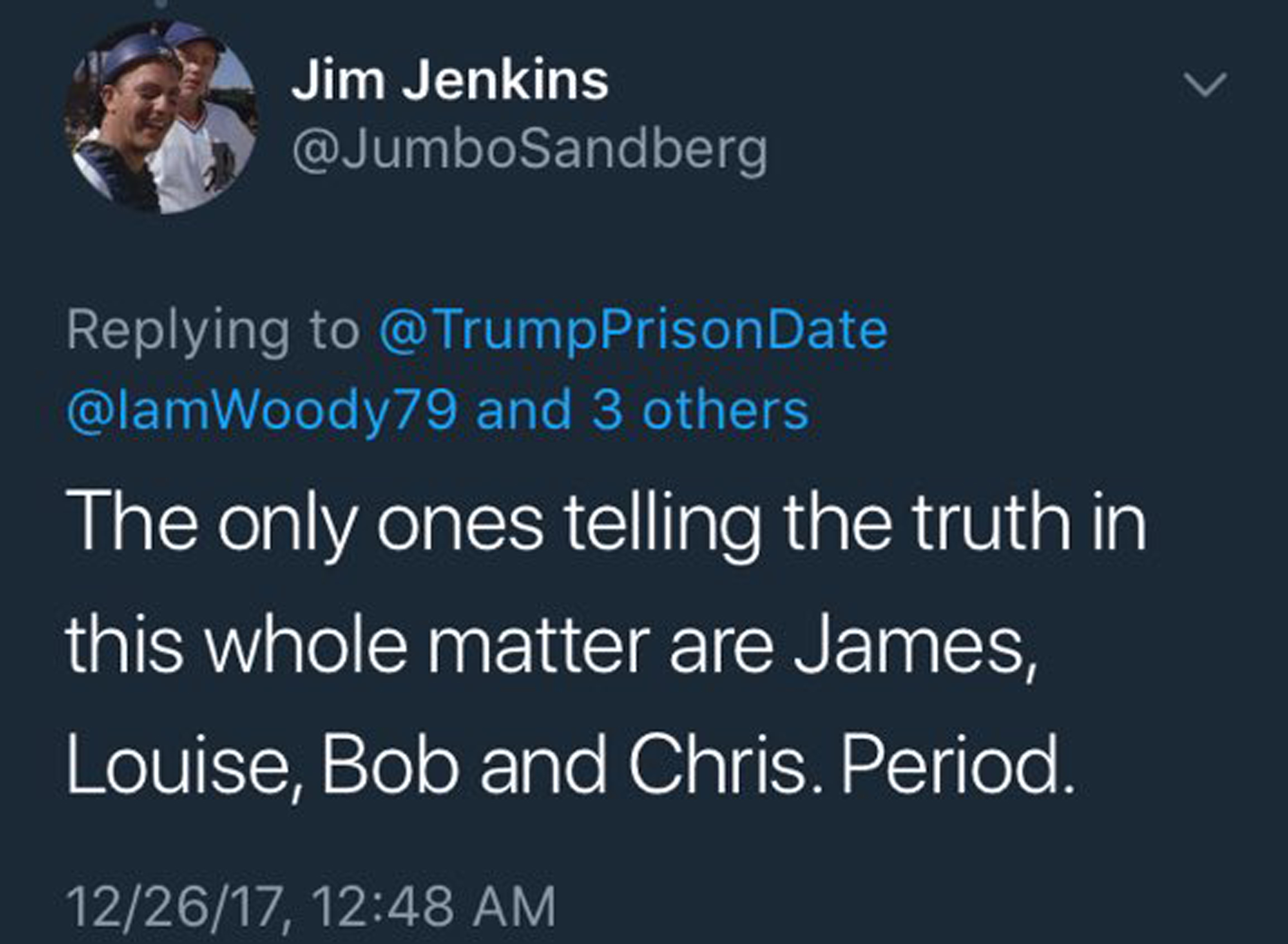 Jim Jenkins TRUTH James Louise Bob Chris Published February 8, 2018 at 3000 × 2199 in Chapter III: Life Beyond Mr. Wonderful – Exposing Twitter Trolls and Class-A A-holes « Previous Next »