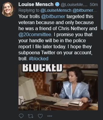 Louise doubling down Published February 2, 2018 at 340 × 398 in Chapter III: Life Beyond Mr. Wonderful – Exposing Twitter Trolls and Class-A A-holes « Previous Next »
