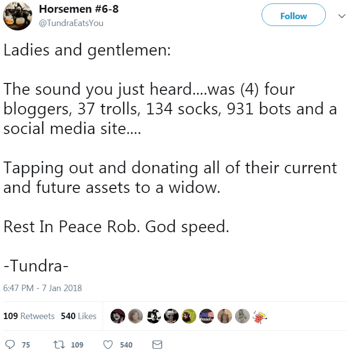 Tundra Widow Tapping Out Published February 7, 2018 at 707 × 715 in Chapter III: Life Beyond Mr. Wonderful – Exposing Twitter Trolls and Class-A A-holes « Previous Next »